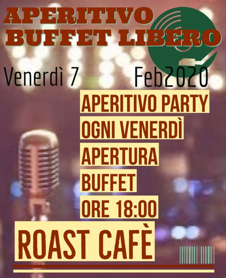 APERITIVO PARTY OGNI VENERDI APERTURA BUFFET ORE 18.00 ROAST CAFE’ Centro Commerciale L’Elefantino – Quadrivio Pioppeta – Alife (CE)