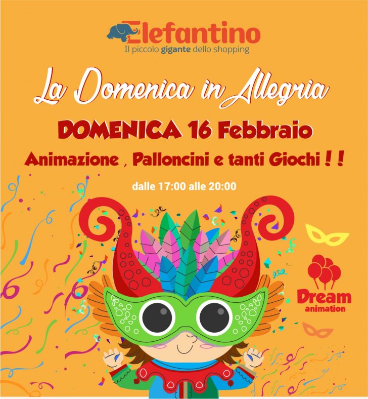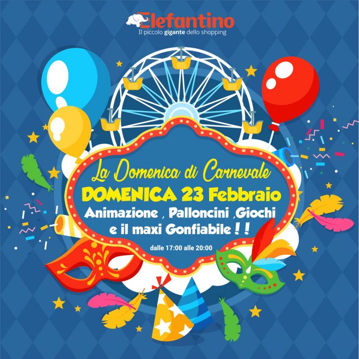 LA DOMENICA DI CARNEVALE ANIMAZIONE, PALLONCINI, GIOCHI E IL MAXI GONFIABILE!! Centro Commerciale Elefantino – Quadrivio Pioppeta – Alife (CE)