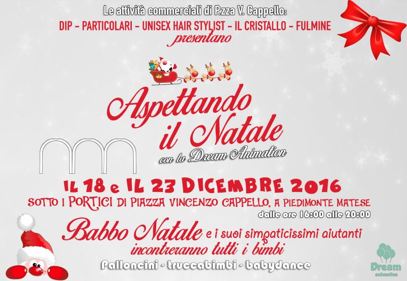 Venerdì 23 Dicembre Babbo Natale verrà a distribuire piccoli regalini a tutti i bambini sotto i portici di Piazza Carmine….La mattina dalle 10.00 alle 12.30 ed il pomeriggio dalle 16.00 Alle 20.00.